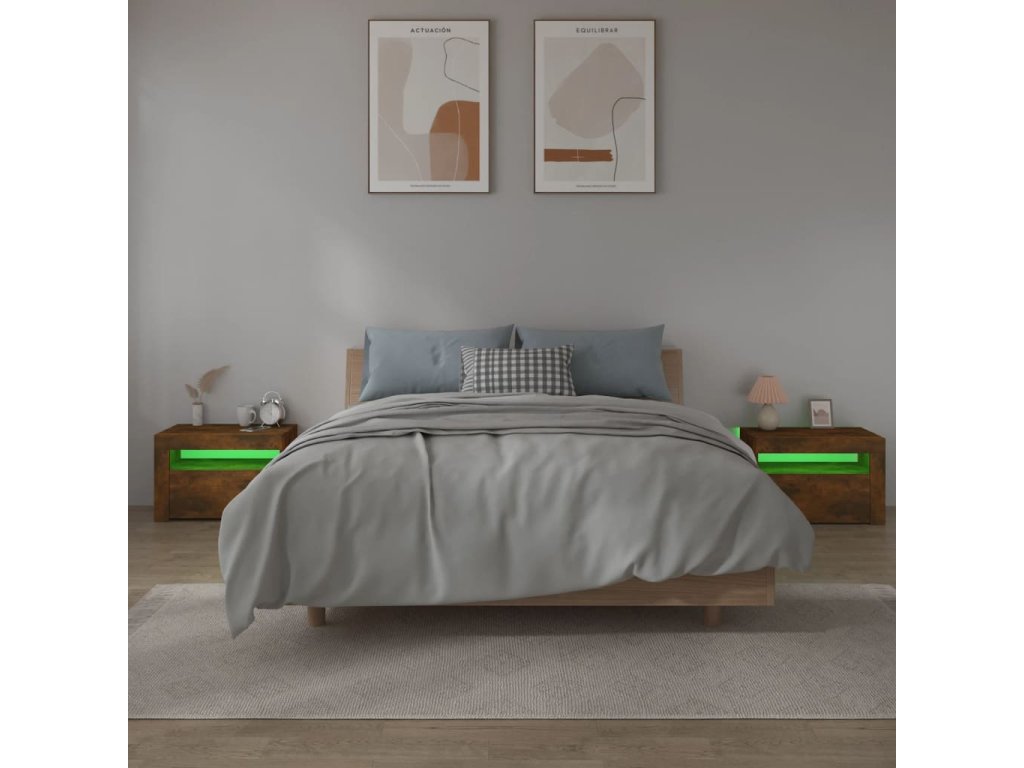 - RGB LED osvětlení: Tyto noční stolky jsou vybaveny RGB LED světly s několika různými nabídkami, které vám umožní změnit barvu nebo nechat světla přizpůsobit automaticky. LED osvětlení podtrhuje moderní vzhled skříňky a zdůrazňuje její trendy styl.
