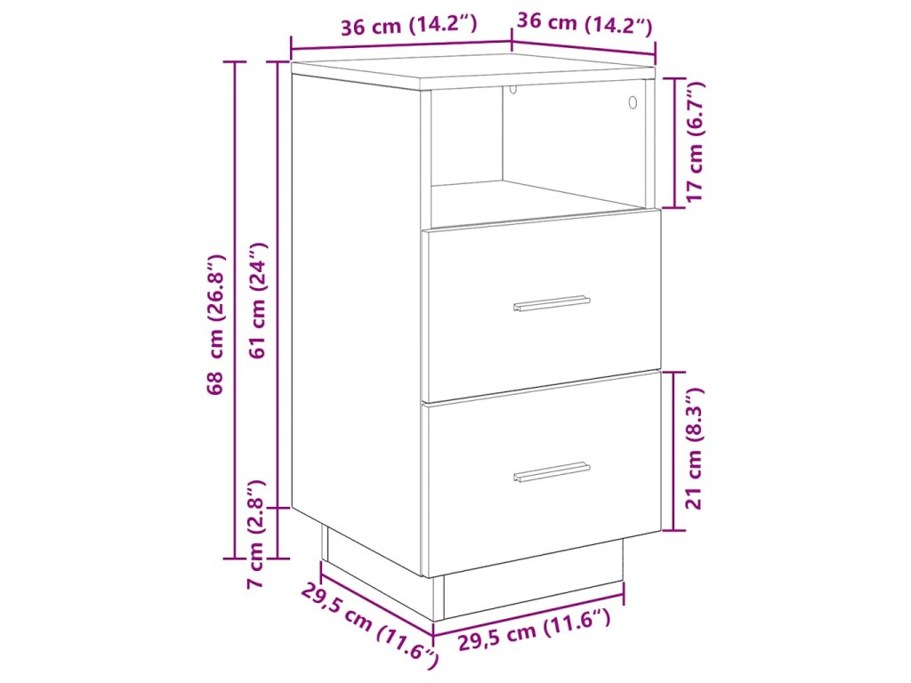 - Dostatek úložného prostoru: Skříňka poskytuje dostatek úložného prostoru díky dvěma zásuvkám a otevřenému úložnému prostoru, což vám umožní uspořádat a uložit předměty, jako jsou knihy, časopisy nebo osobní věci, a udržet si tak v ložnici pořádek.