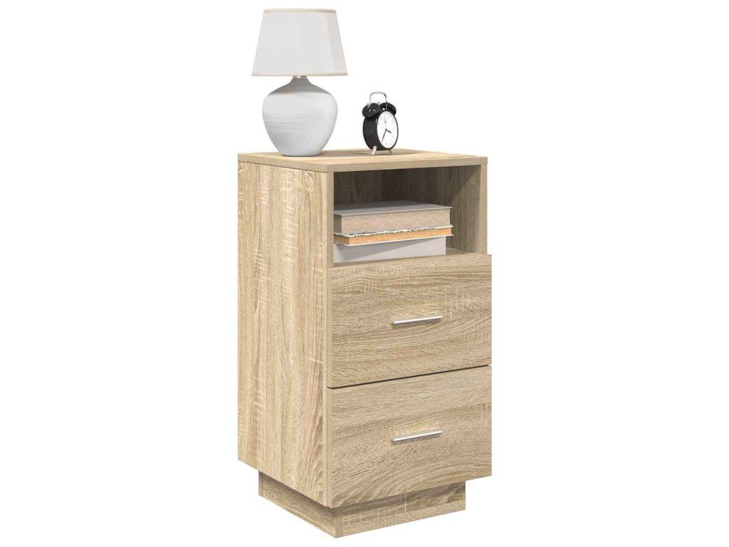 - Dostatek úložného prostoru: Skříňka poskytuje dostatek úložného prostoru díky dvěma zásuvkám a otevřenému úložnému prostoru, což vám umožní uspořádat a uložit předměty, jako jsou knihy, časopisy nebo osobní věci, a udržet si tak v ložnici pořádek.