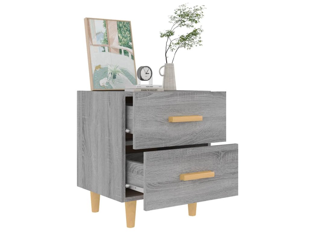 - Spousta úložného prostoru: Noční skříňka je vybavena dvěma zásuvkami s dřevěnými úchytkami. V prostorných zásuvkách budete mít všechny své věci přehledně uspořádané.