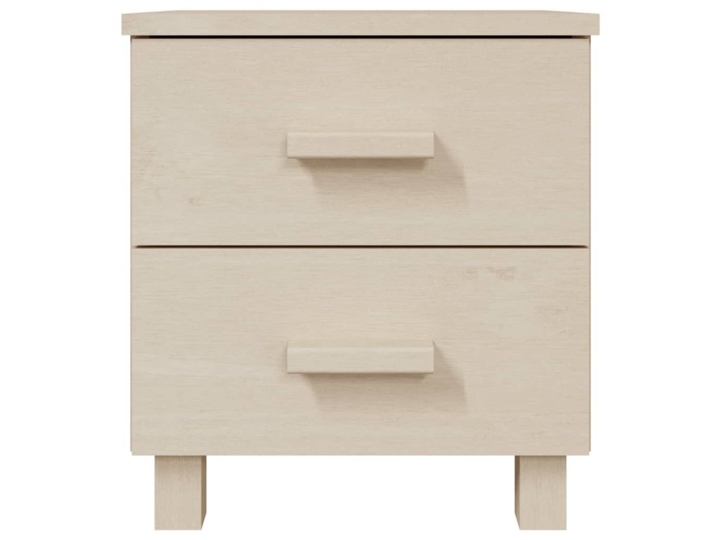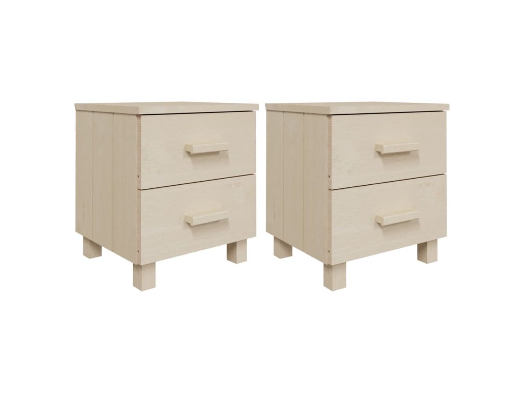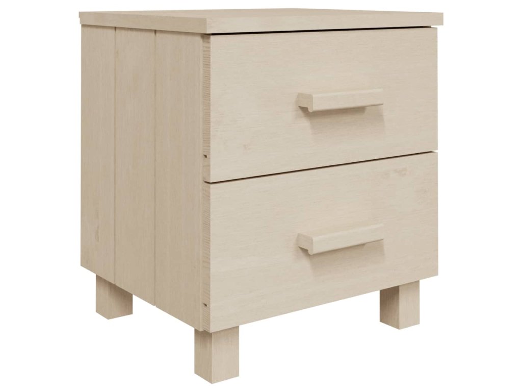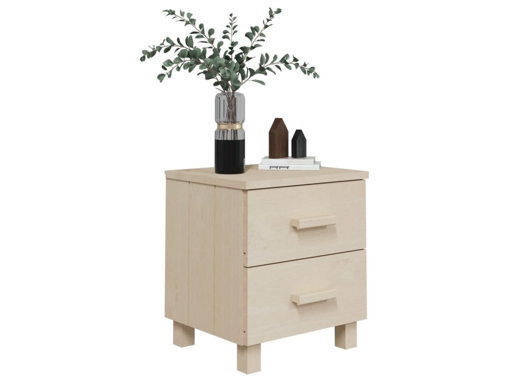 Noční stolek je vyroben z masivního borového dřeva, takže je stabilní a odolný. Má dvě hladce posuvné zásuvky, které poskytují dostatek úložného prostoru pro ukládání časopisů, knih, dálkových ovladačů a dalších malých předmětů, které chcete mít po ruce. Robustní horní deska je navíc ideální pro vystavení dekorativních předmětů.