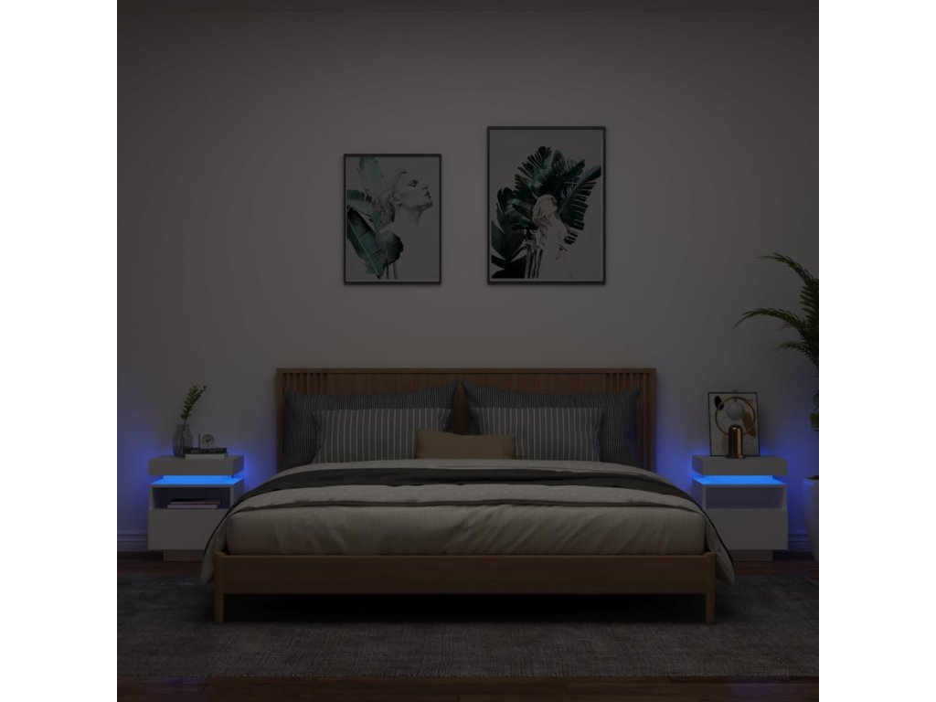 Moderní a praktický design těchto nočních stolků s LED osvětlením zaujme ve vašem pokoji na první pohled.