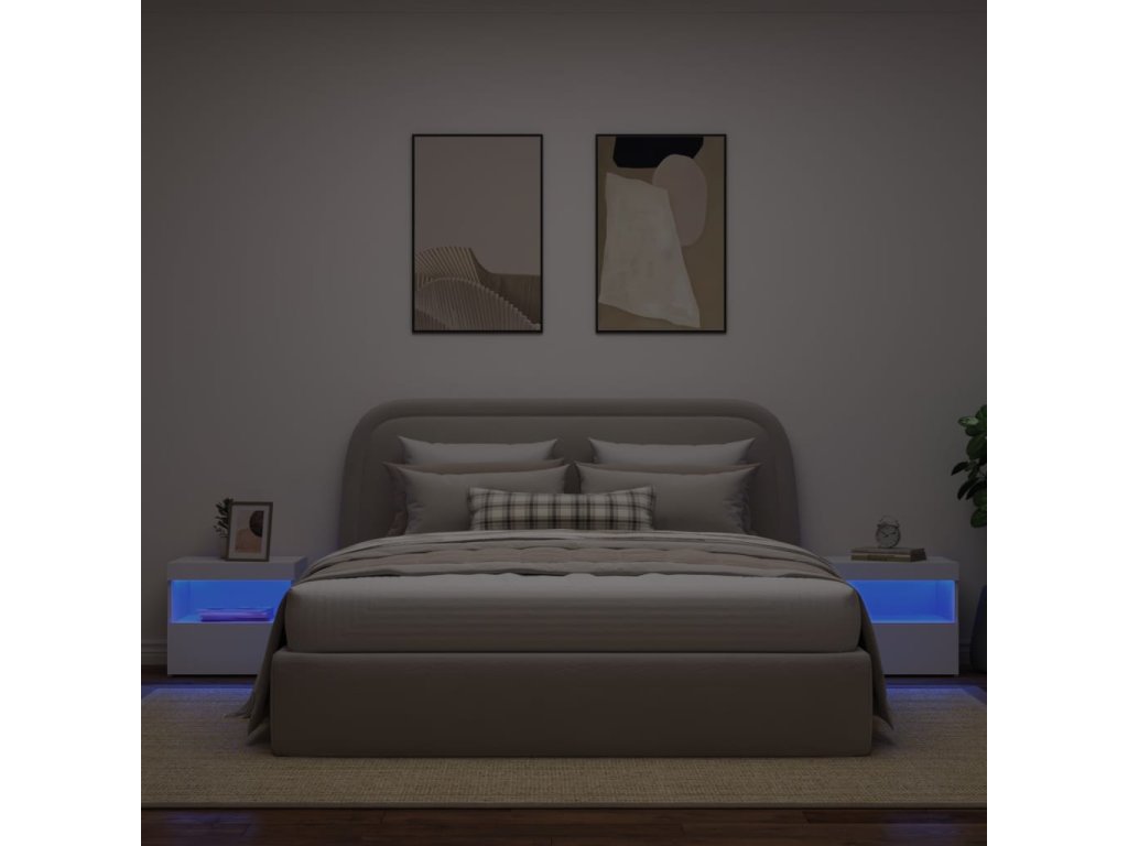 - Nastavitelná LED světla: Tyto noční stolky jsou vybaveny RGB LED světly s několika různými nabídkami, které vám umožní změnit a automaticky nastavit barvu světla, čímž barevně a krásně vyzdobí váš domov.