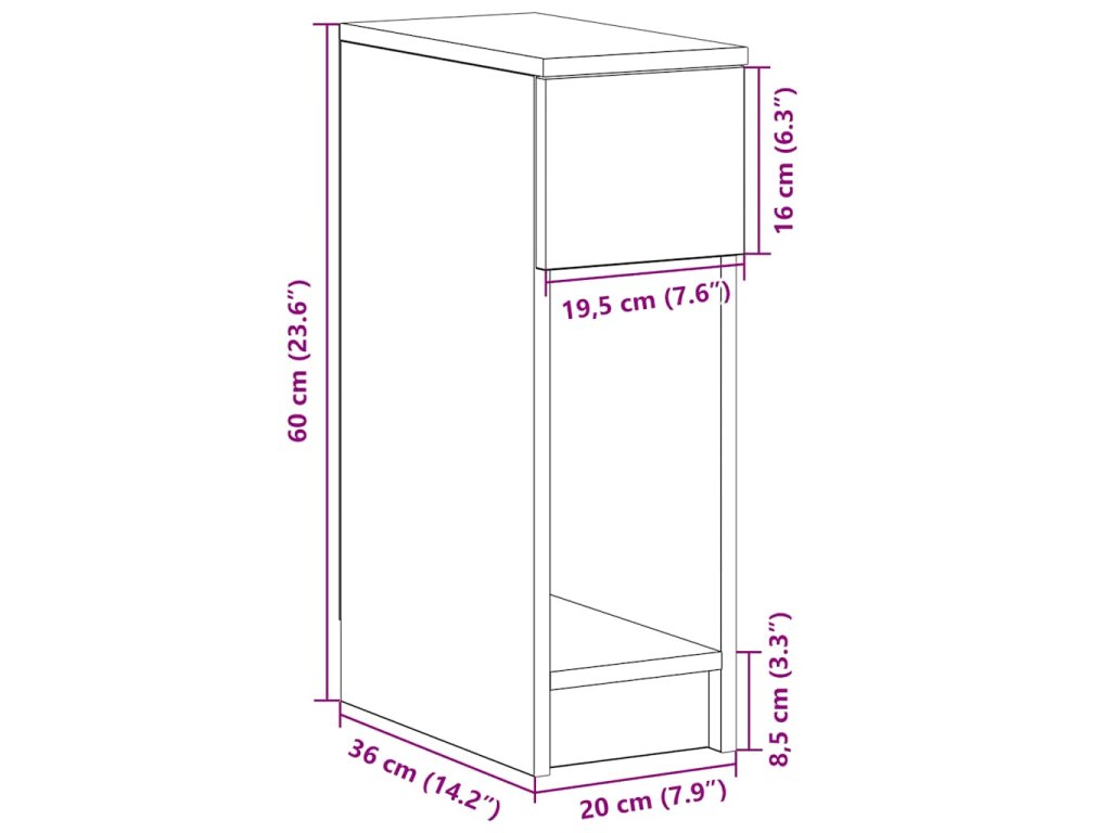 - Celkové rozměry: 20 x 36 x 60 cm (Š x H x V)
