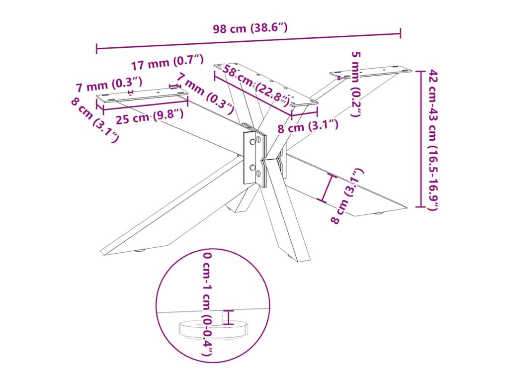 vidaXL Noha konferenčního stolku ve tvaru pavouka černá 98 x 58 x (42-43) cm ocel