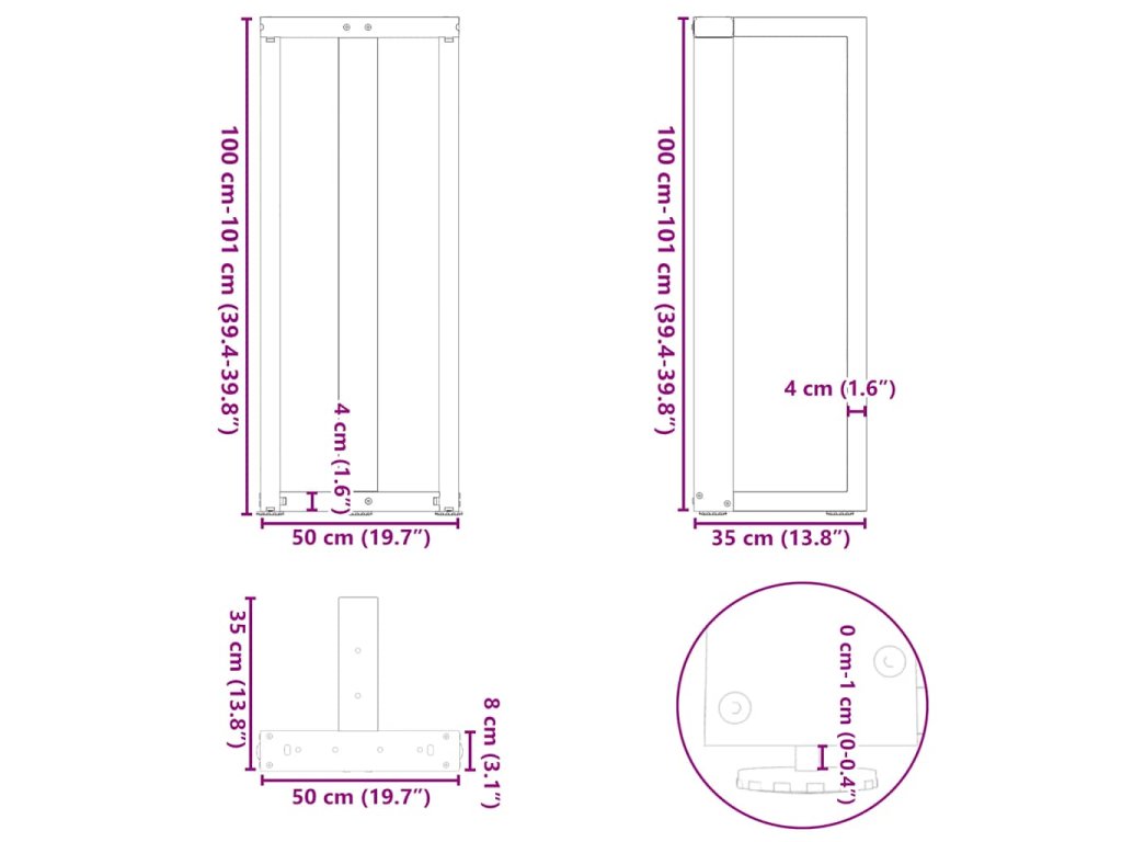 - Praktický design: Tato noha pracovní desky je vybavena nastavitelnými podpěrami, které zajišťují stabilitu i na nerovných podlahách a minimalizují poškrábání podlahy. Trubka má navíc předvrtané otvory a dodávané šrouby, které lze použít k upevnění nohy k desce stolu (nejsou součástí dodávky), což usnadňuje montáž.