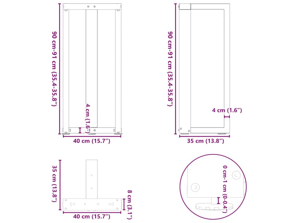 - Celkové rozměry: 40 x 35 x (90-91) cm (Š x H x V)
