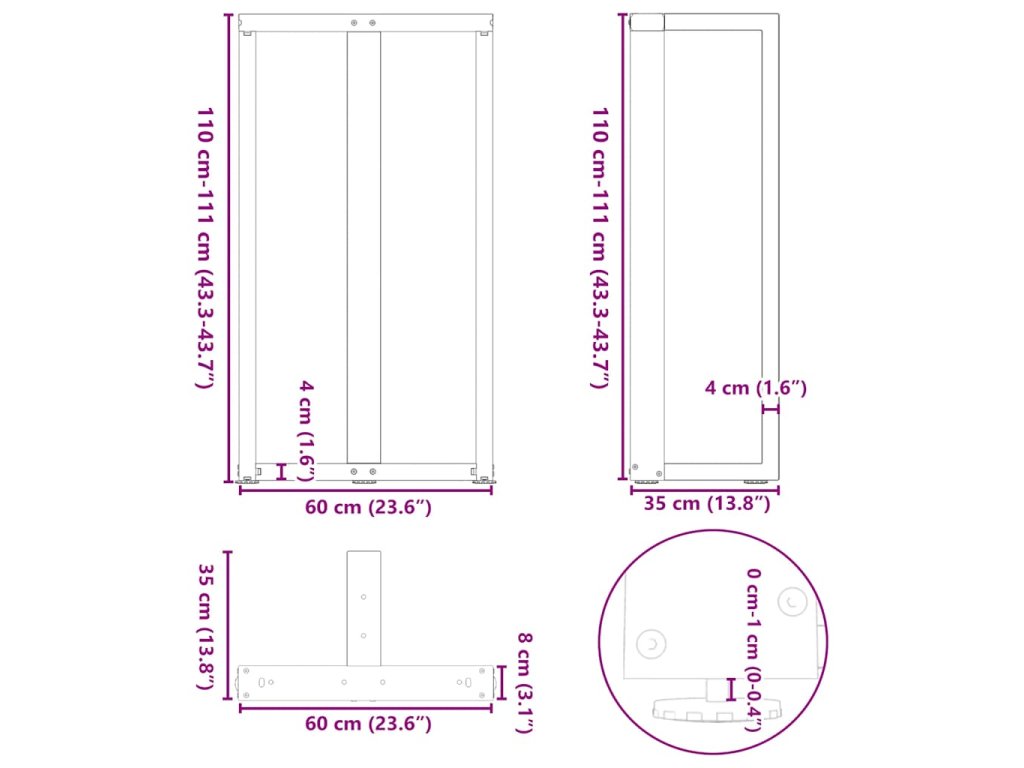 - Praktický design: Tato noha pracovní desky je vybavena nastavitelnými podpěrami, které zajišťují stabilitu i na nerovných podlahách a minimalizují poškrábání podlahy. Trubka má navíc předvrtané otvory a dodávané šrouby, které lze použít k upevnění nohy k desce stolu (nejsou součástí dodávky), což usnadňuje montáž.
