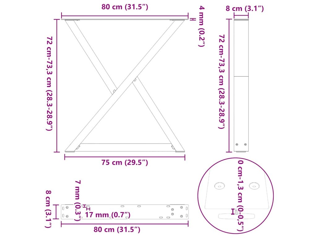 80 x (72-73.3) cm