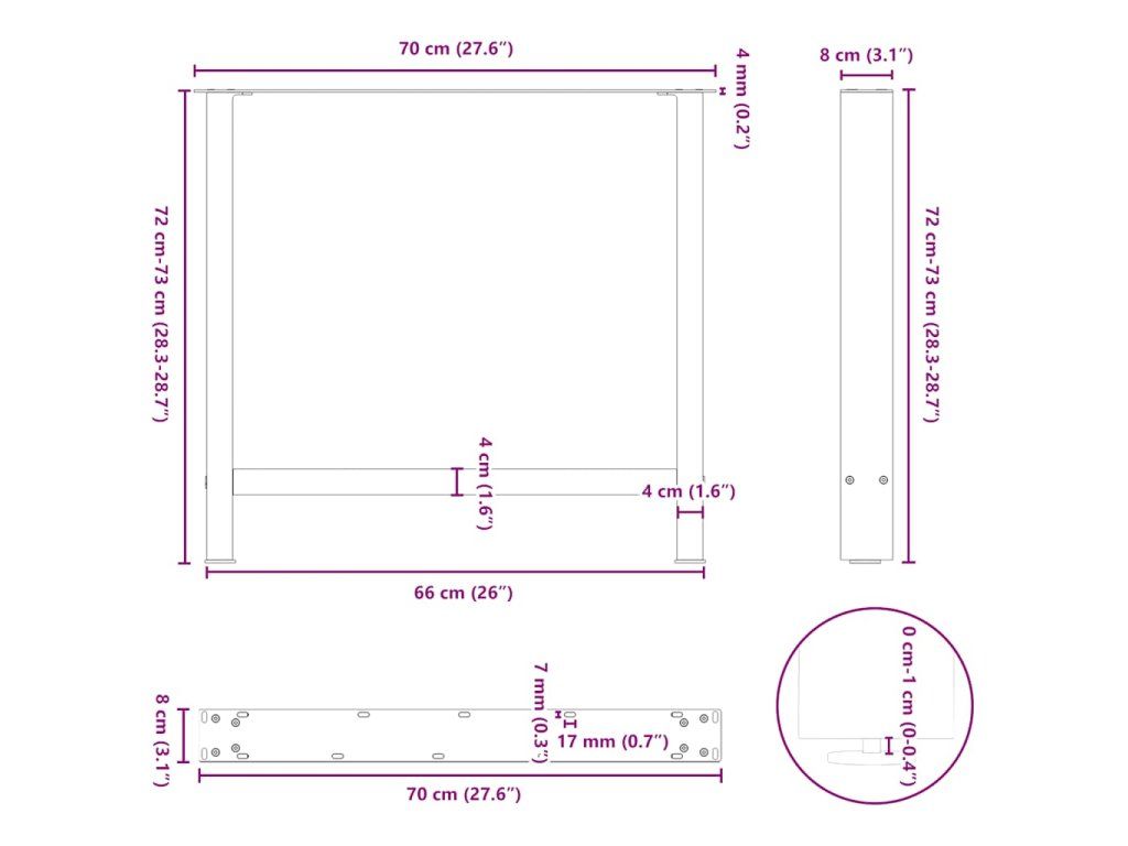 - Praktický design: Tato noha jídelního stolu je vybavena nastavitelnými podpěrami, které zajišťují stabilitu i na nerovných podlahách a minimalizují poškrábání podlahy. Konzola má navíc předvrtané otvory a dodávané šrouby, které lze použít k upevnění nohy k desce stolu (nejsou součástí dodávky), což usnadňuje montáž.