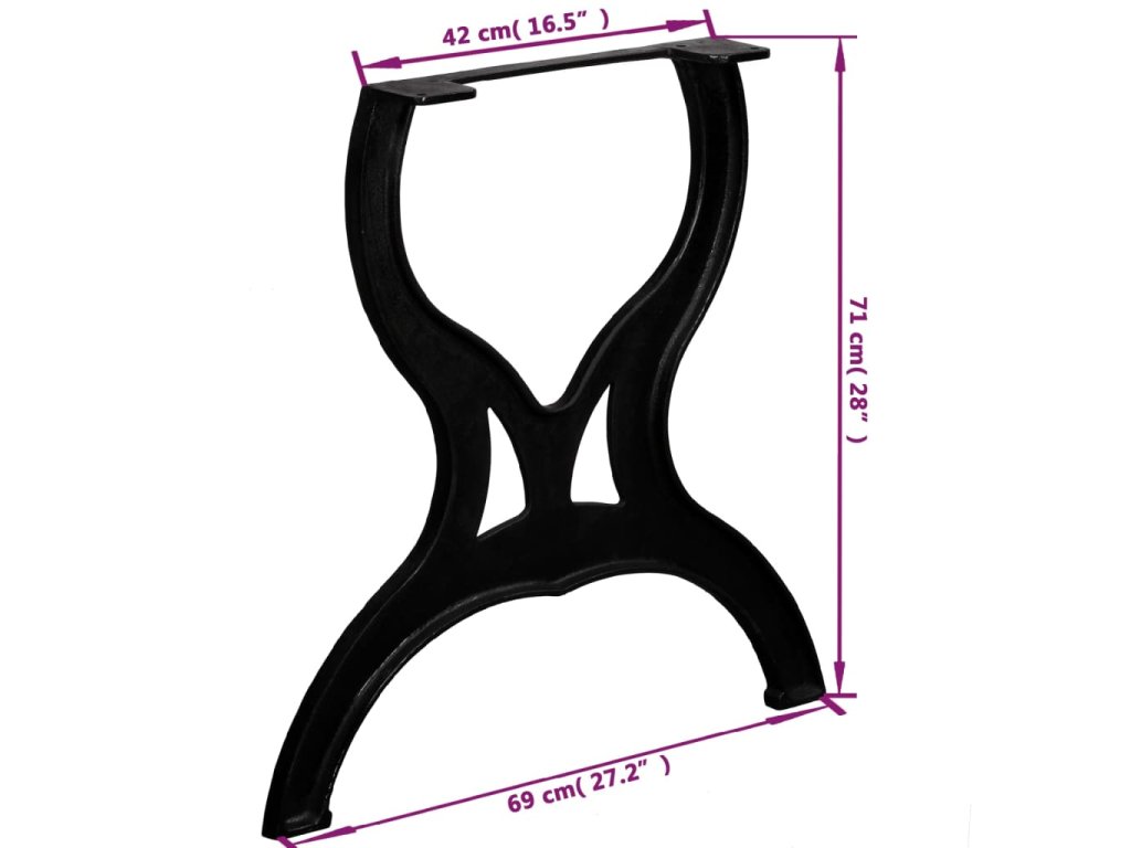 Nohy jsou vyrobeny z masivní litiny, která je vyleštěná, natřená a nalakovaná. Díky tomu jsou pevné a hodně toho vydrží. Protože jsou navrženy ve tvaru písmene X, unesou i těžkou desku. Každá z nich je zakončena montážní podložkou, do které jsou navrtané díry. Montáž desky je proto rychlá a jednoduchá.