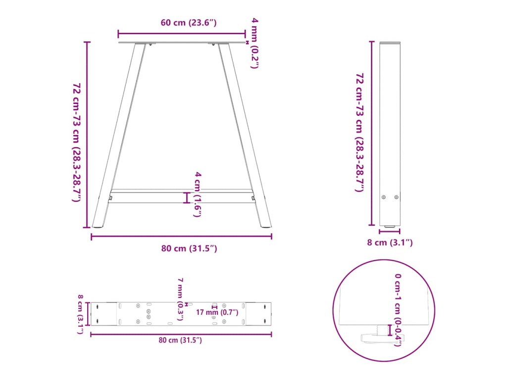 vidaXL Nohy k jídelnímu stolu ve tvaru A, 2 ks, antracitové, 80 x (72-73) cm, ocel