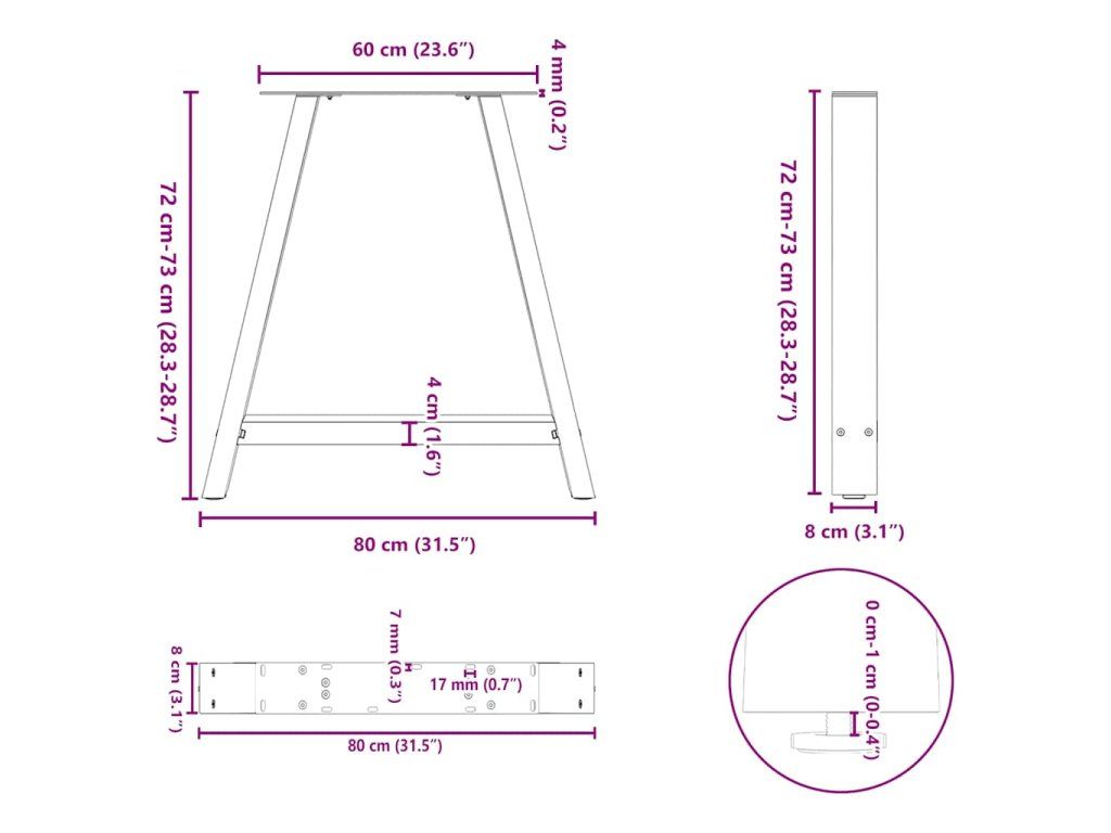 80 x (72-73) cm