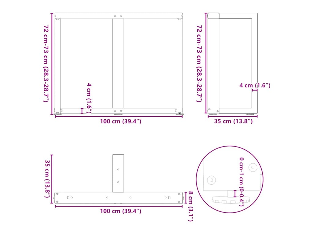vidaXL Nohy k jídelnímu stolu ve tvaru T, 2 ks, antracitové, 100 x 35 x (72-73) cm, ocel