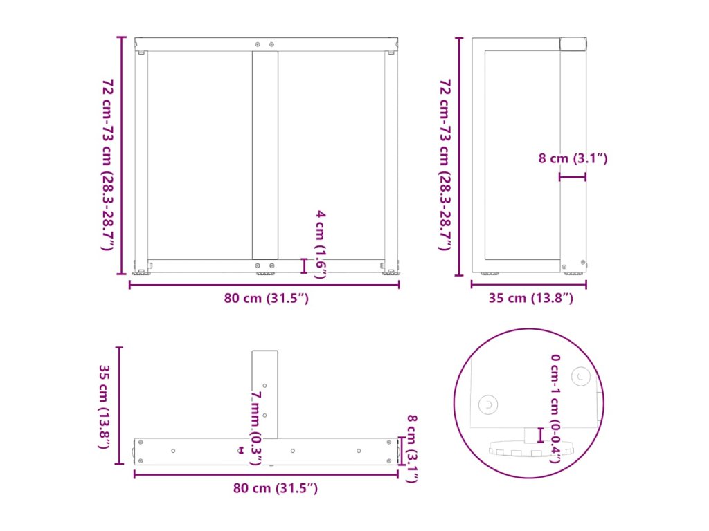 vidaXL Nohy k jídelnímu stolu ve tvaru T, 2 ks, černé, 80 x 35 x (72-73) cm, ocel