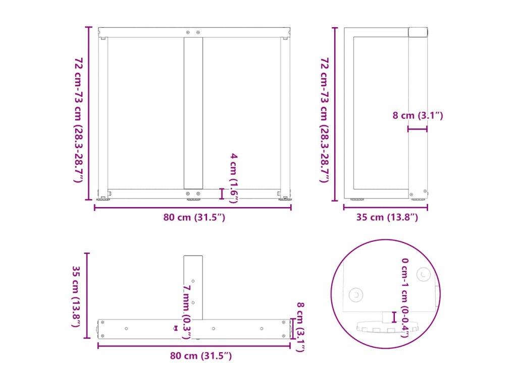 - Celkové rozměry: 80 x 35 x (72-73) cm (Š x H x V)