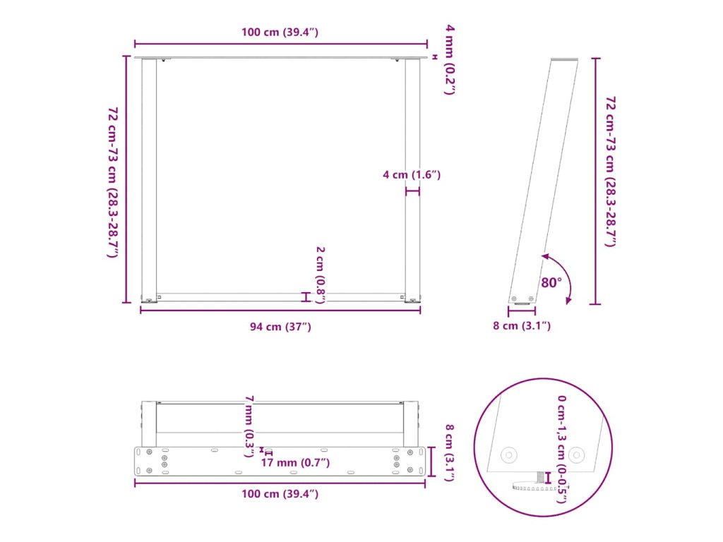 - Praktický design: Tato jídelní noha je vybavena nastavitelnou podnoží, která zajišťuje stabilitu i na nerovných podlahách a minimalizuje poškrábání podlahy. Kromě toho je konzola vybavena předvrtanými otvory a šrouby, které jsou součástí dodávky a které lze použít k upevnění nohy k desce stolu (nejsou součástí dodávky), což usnadňuje montáž.