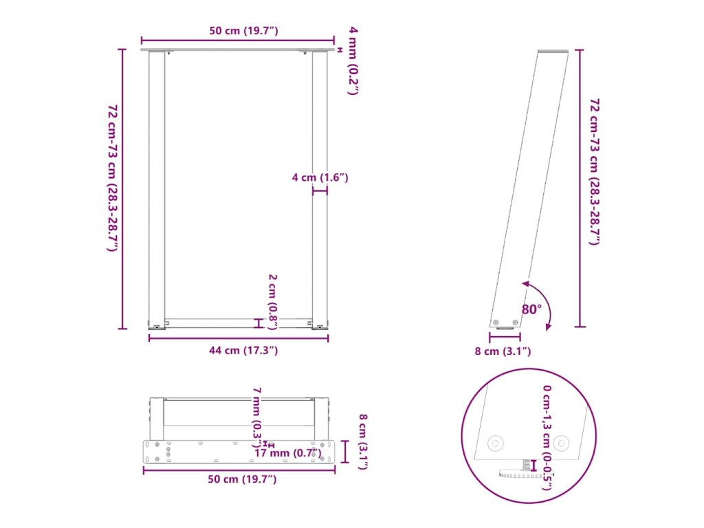 vidaXL Nohy k jídelnímu stolu ve tvaru U, 2 ks, přírodní ocel, 50 x (72-73) cm, ocel