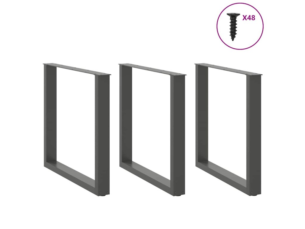 vidaXL Nohy k jídelnímu stolu ve tvaru U, 3 ks, antracitové, 90 x (72-73) cm, ocel