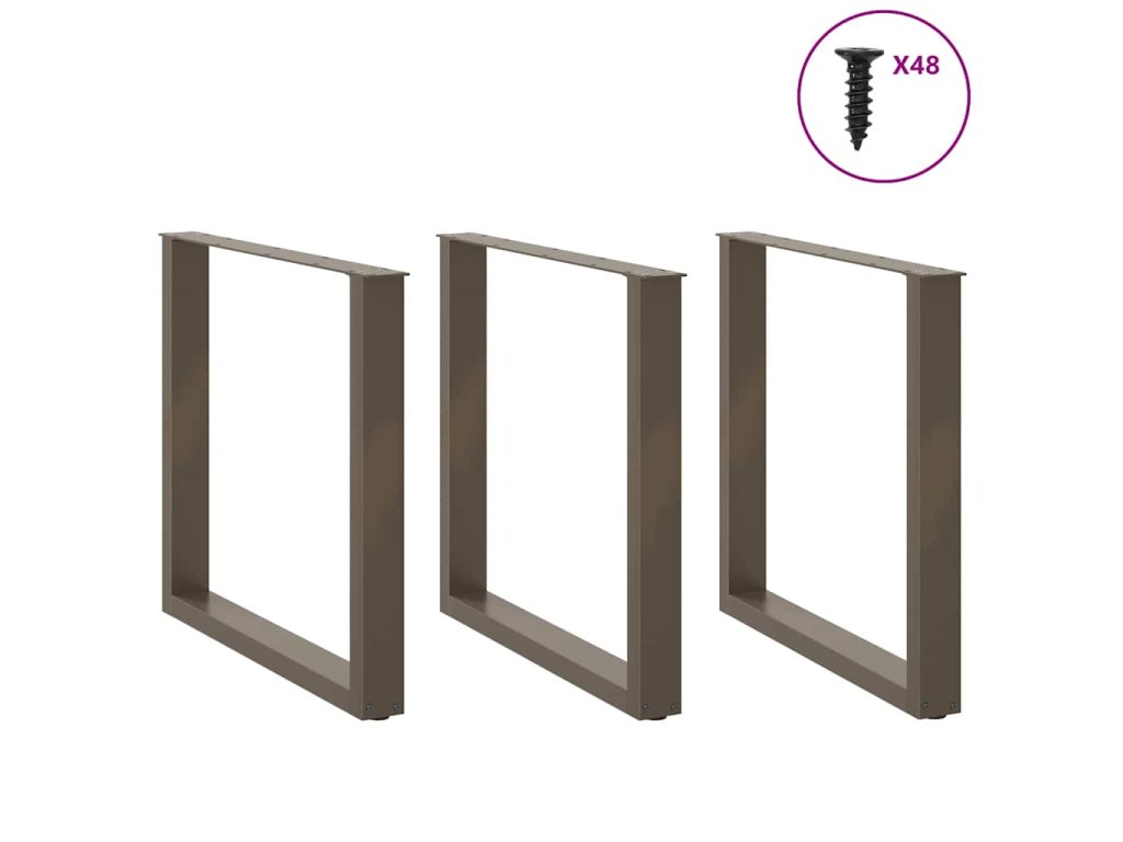 vidaXL Nohy k jídelnímu stolu ve tvaru U, 3 ks, přírodní ocel, 90 x (72-73) cm, ocel
