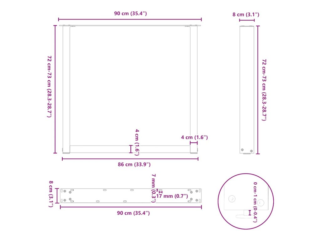 90 x (72-73) cm