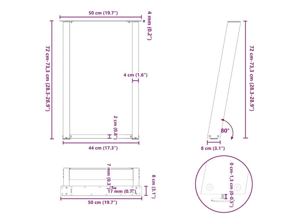 vidaXL Nohy k jídelnímu stolu ve tvaru U 2 ks antracitové 50 x (72-73) cm ocelové