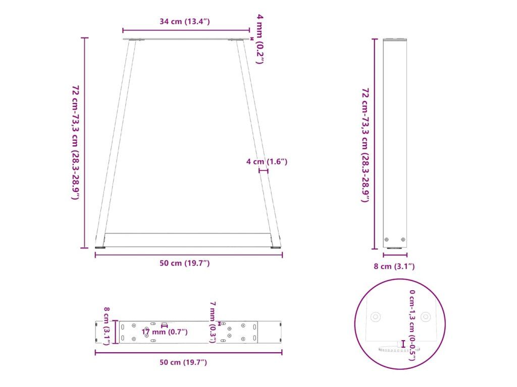 vidaXL Nohy k jídelnímu stolu ve tvaru V, 2 ks, antracitové, 50x(72-73,3) cm, ocel