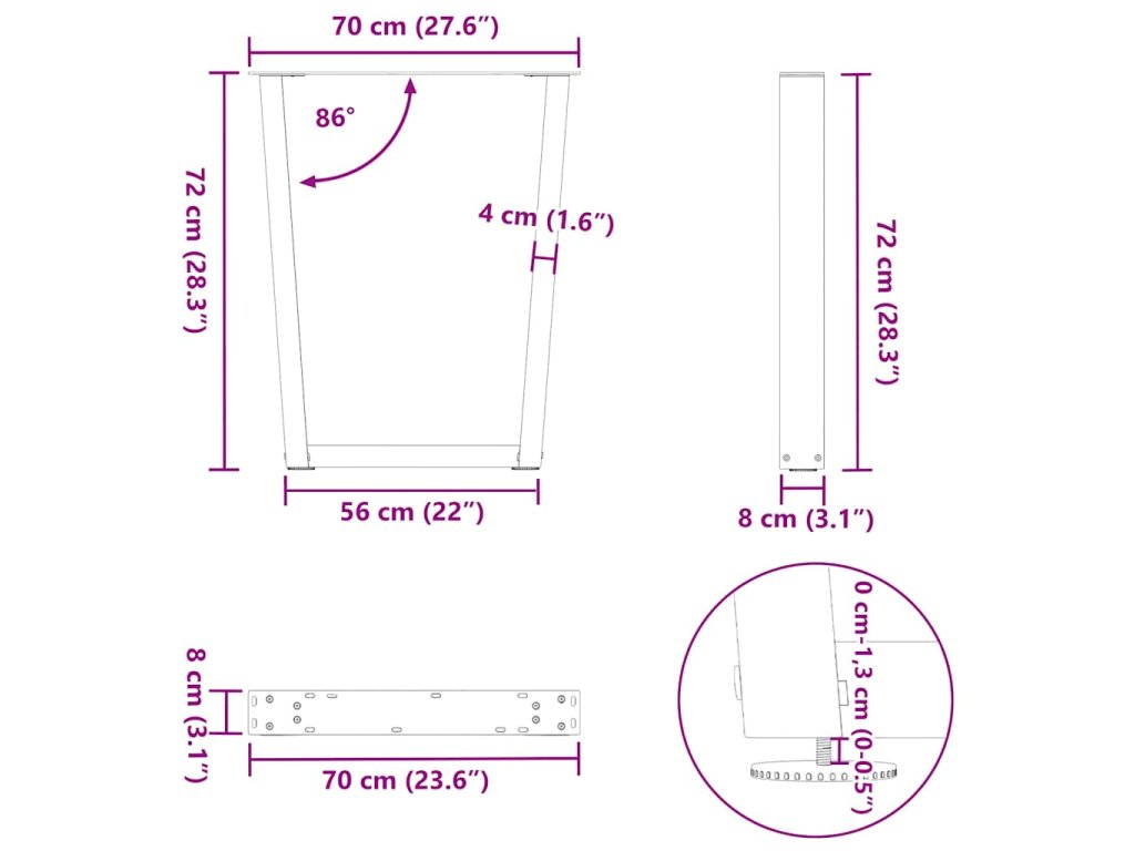 - Praktický design: Tato jídelní noha je vybavena nastavitelnými podnožemi, které zajišťují stabilitu i na nerovných podlahách a minimalizují poškrábání podlahy. Kromě toho je konzola vybavena předvrtanými otvory a šrouby, které jsou součástí dodávky a které lze použít k upevnění nohy k desce stolu (nejsou součástí dodávky), což usnadňuje montáž.