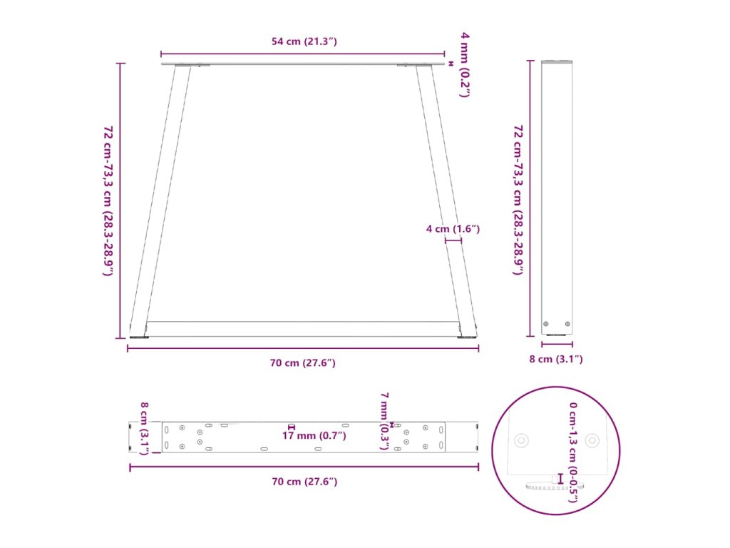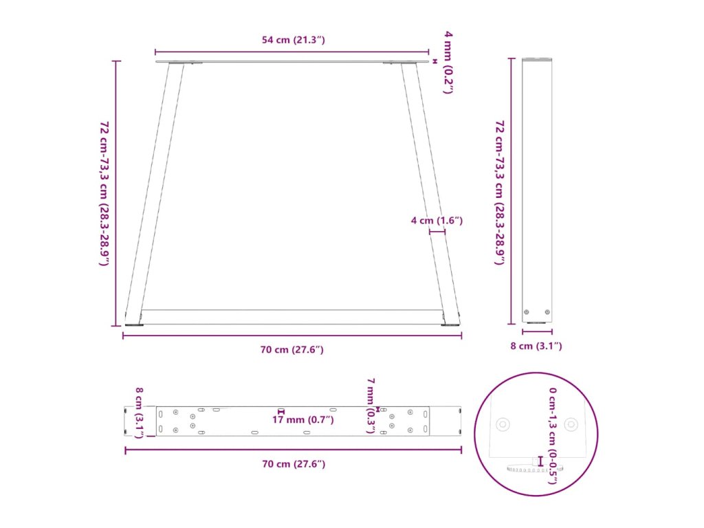 - Praktický design: Tato jídelní noha je vybavena nastavitelnými podnožemi, které zajišťují stabilitu i na nerovných podlahách a minimalizují poškrábání podlahy. Kromě toho je konzola vybavena předvrtanými otvory a šrouby, které jsou součástí dodávky a které lze použít k upevnění nohy k desce stolu (nejsou součástí dodávky), což usnadňuje montáž.