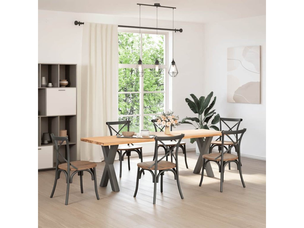 - Robustní konstrukce: Kovová noha stolu ve tvaru X zajišťuje, že unese i těžkou desku stolu.