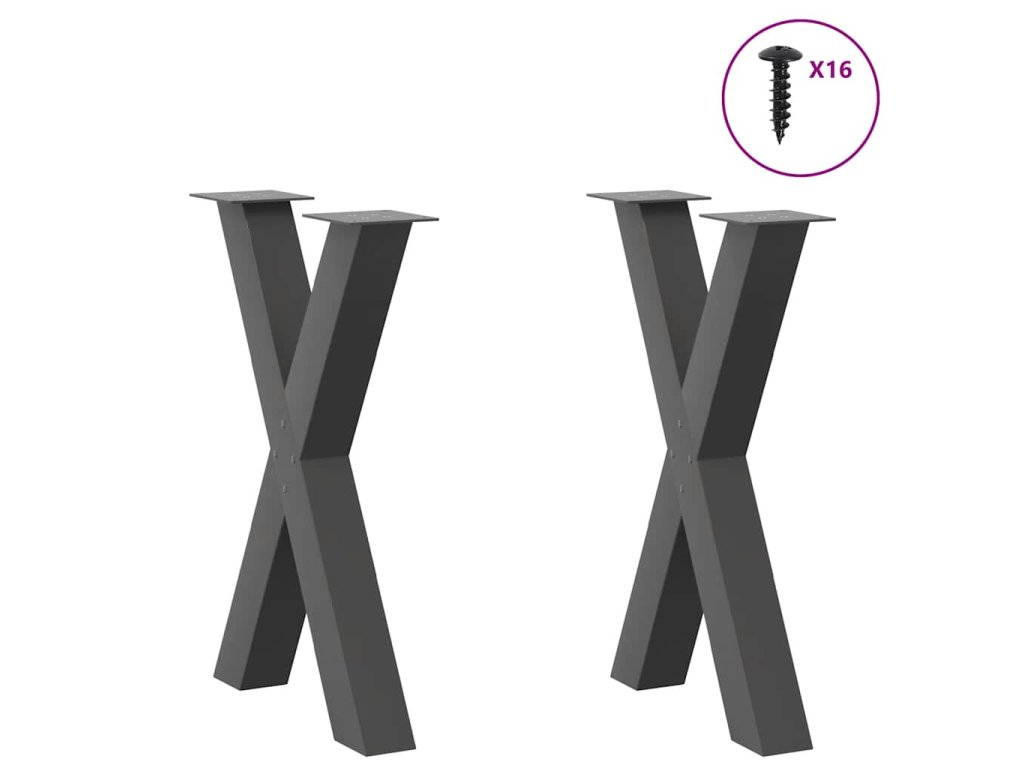 vidaXL Nohy k jídelnímu stolu ve tvaru X, 2 ks, antracitové, 50 x (72-73) cm, ocel