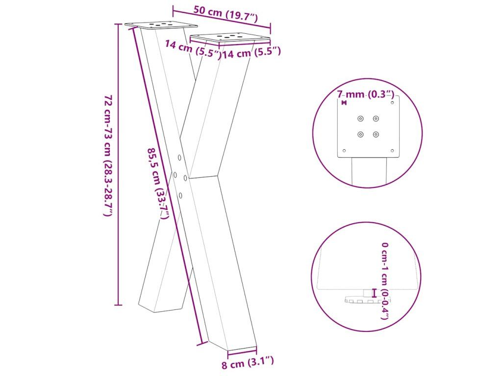- Robustní konstrukce: Kovová noha stolu ve tvaru X zajišťuje, že unese i těžkou desku stolu.