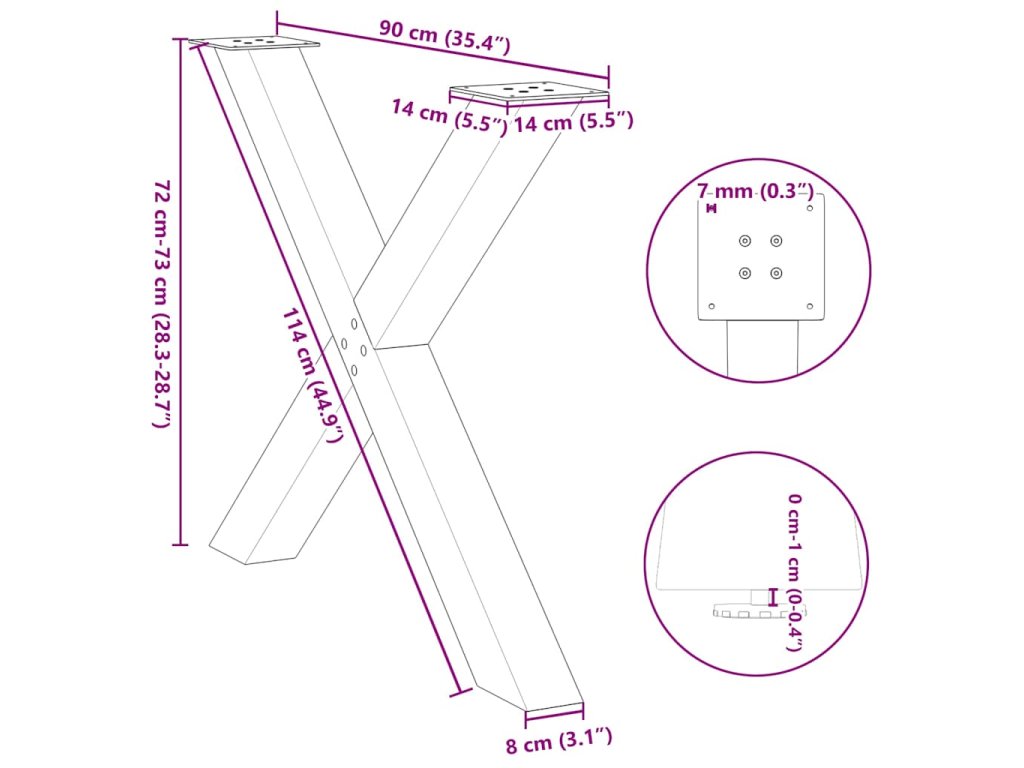 vidaXL Nohy k jídelnímu stolu ve tvaru X, 2 ks, přírodní ocel, 90 x (72-73) cm, ocel
