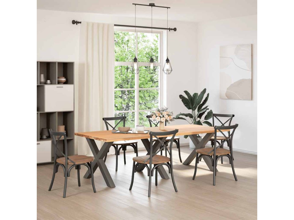 - Robustní konstrukce: Konstrukce kovové nohy stolu ve tvaru písmene X zajišťuje, že unese i těžkou desku stolu.