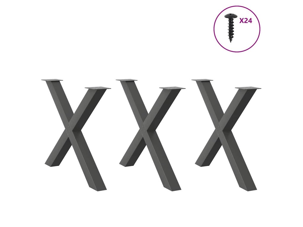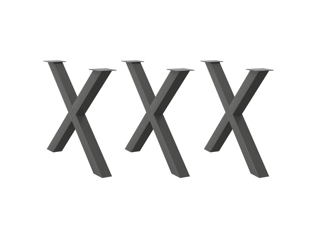 vidaXL Nohy k jídelnímu stolu ve tvaru X, 3 ks, antracitové, 90 x (72-73) cm, ocel