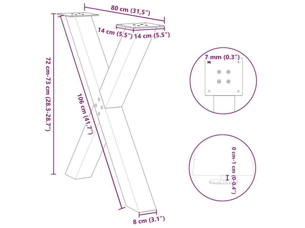 - Robustní konstrukce: Kovová noha stolu ve tvaru X zajišťuje, že unese i těžkou desku stolu.