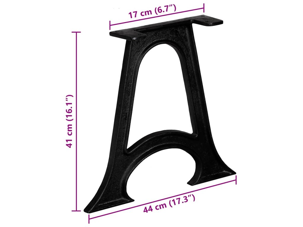 Nohy jsou vyrobeny z masivní litiny, která byla vyleštěná, natřená a nalakovaná. Díky tomu jsou pevné a hodně toho vydrží. Protože jsou navrženy ve tvaru písmene A a spojuje je příčka, unesou i těžkou desku. Každá z nich je zakončena montážní podložkou, do které jsou navrtané díry. Montáž desky je proto rychlá a jednoduchá.