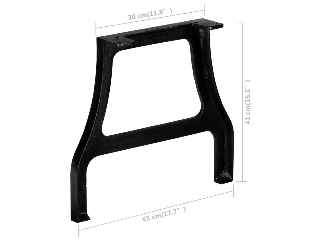 Nohy jsou vyrobeny z masivní litiny, která byla vyleštěná, natřená a nalakovaná. Díky tomu jsou pevné a hodně toho vydrží. Protože jsou navrženy ve tvaru písmene A, unesou i těžkou desku. Každá z nich je zakončena montážní podložkou, do které jsou navrtané díry. Montáž desky je proto rychlá a jednoduchá.