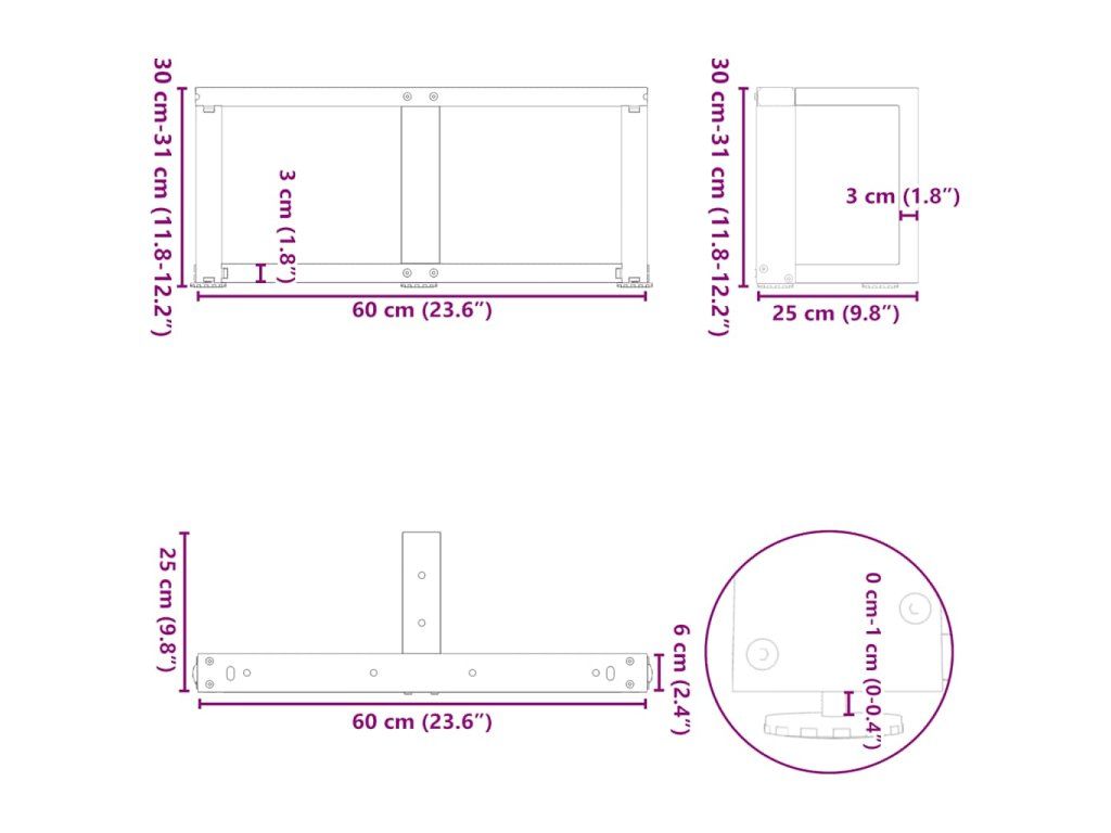 - Celkové rozměry: 60 x 25 x (30-31) cm (Š x H x V)