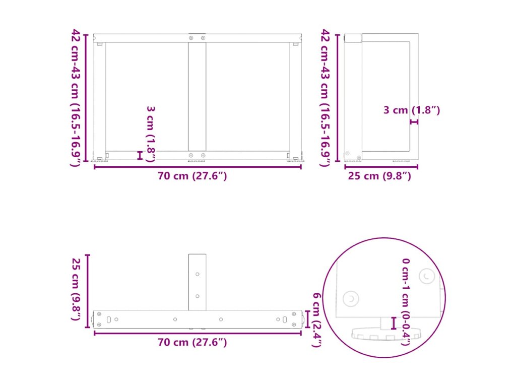 - Praktický design: Tato noha pracovní desky je vybavena nastavitelnými podpěrami, které zajišťují stabilitu i na nerovných podlahách a minimalizují poškrábání podlahy. Trubka má navíc předvrtané otvory a dodávané šrouby, které lze použít k upevnění nohy k desce stolu (nejsou součástí dodávky), což usnadňuje montáž.