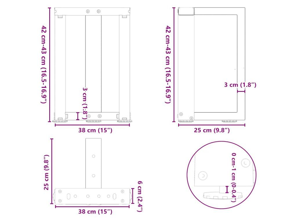 - Praktický design: Tato noha pracovní desky je vybavena nastavitelnými podpěrami, které zajišťují stabilitu i na nerovných podlahách a minimalizují poškrábání podlahy. Trubka má navíc předvrtané otvory a dodávané šrouby, které lze použít k upevnění nohy k desce stolu (nejsou součástí dodávky), což usnadňuje montáž.