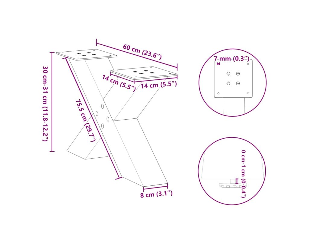 - Praktický design: Tato noha stolu je vybavena nastavitelnými podpěrami, které zajišťují stabilitu i na nerovných podlahách a minimalizují poškrábání podlahy. Konzola má navíc předvrtané otvory a dodávané šrouby, které lze použít k upevnění nohy k desce stolu (nejsou součástí dodávky), což usnadňuje montáž.