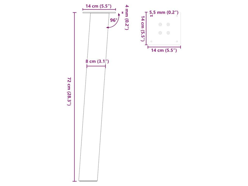 - Rozměry trubky: 80 x 80 x 1,2 mm (D x Š x V)