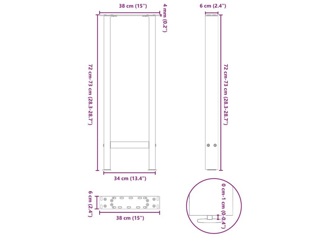 - Praktický design: Tato noha konzolového stolu je vybavena nastavitelnými podpěrami, které zajišťují stabilitu i na nerovných podlahách a minimalizují poškrábání podlahy. Konzola má navíc předvrtané otvory a dodávané šrouby, které lze použít k upevnění nohy k desce stolu (nejsou součástí dodávky), což usnadňuje montáž.