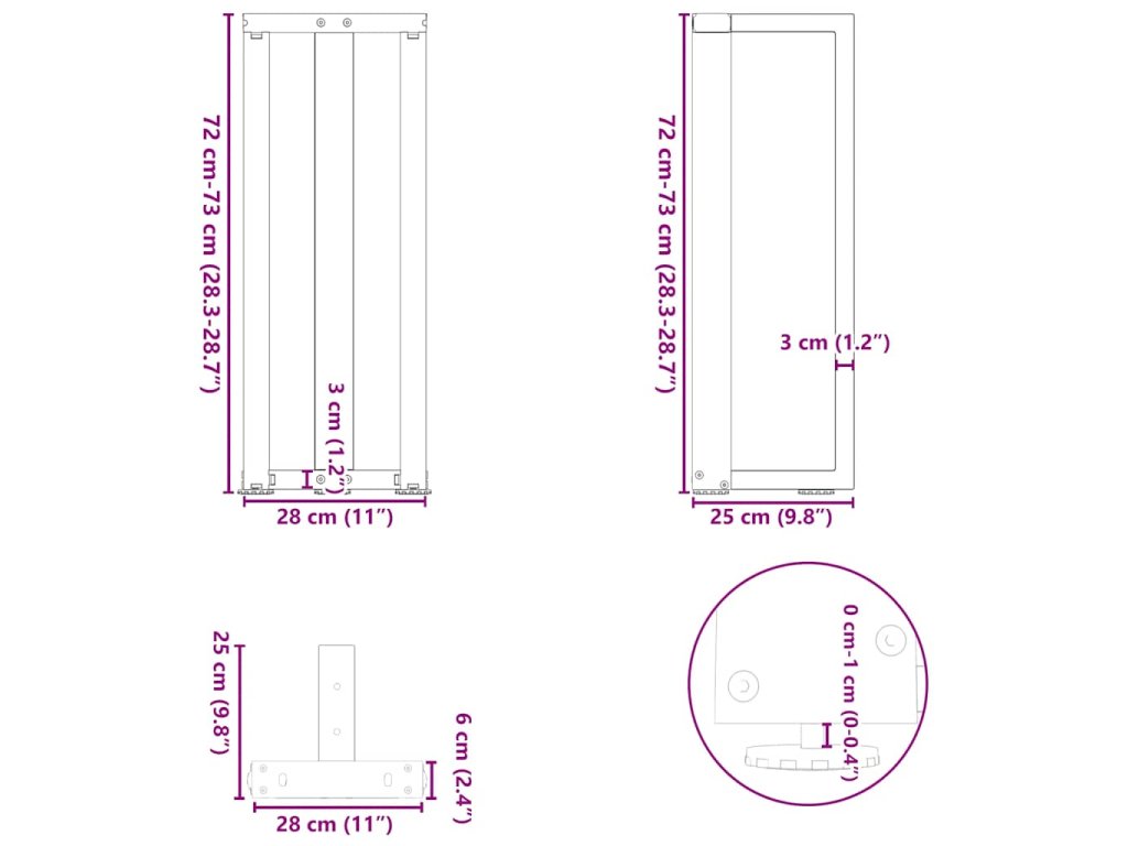 vidaXL Nohy konzolového stolku ve tvaru T, 2 ks, antracitové, 25 x 28 x (72-73) cm, ocel