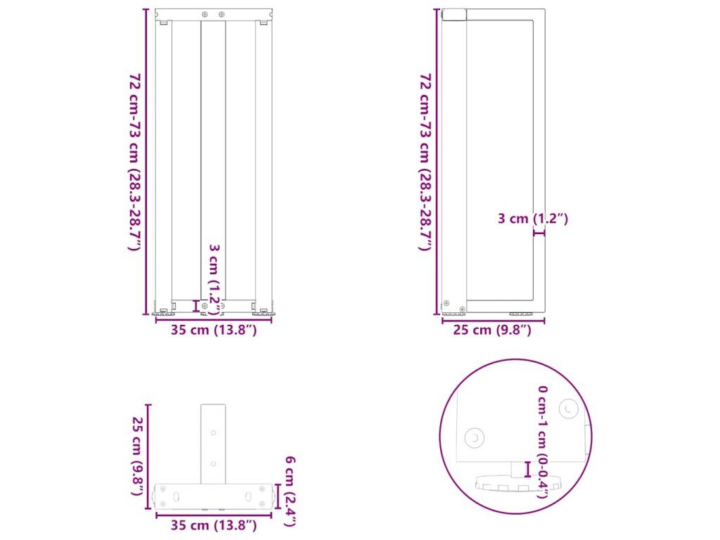 vidaXL Nohy konzolového stolku ve tvaru T, 2 ks, antracitové, 38 x 25 x (72-73) cm, ocel