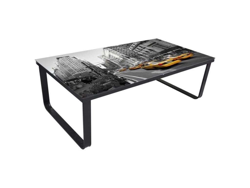 Tento obdélníkový konferenční stolek, vyrobený z kvalitního železa a tvrzeného skla, má moderní styl.