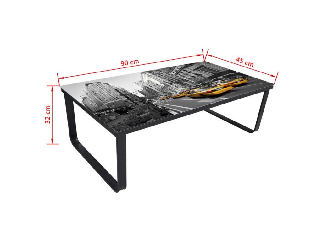 Železný podstavec je pevnou oporou pro skleněnou stolní desku a zajišťuje stabilitu stolku. Tento skleněný konferenční stolek má ideální výšku a hodí se pro odkládání dálkového ovládání, časopisů a podobně. Bude vynikajícím doplňkem zařízení vašeho domu.