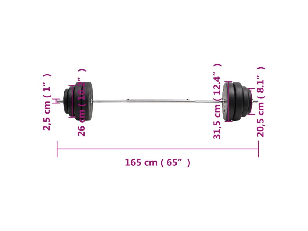- Rozměry činkové tyče: 25 mm x 165 cm (průměr x D)