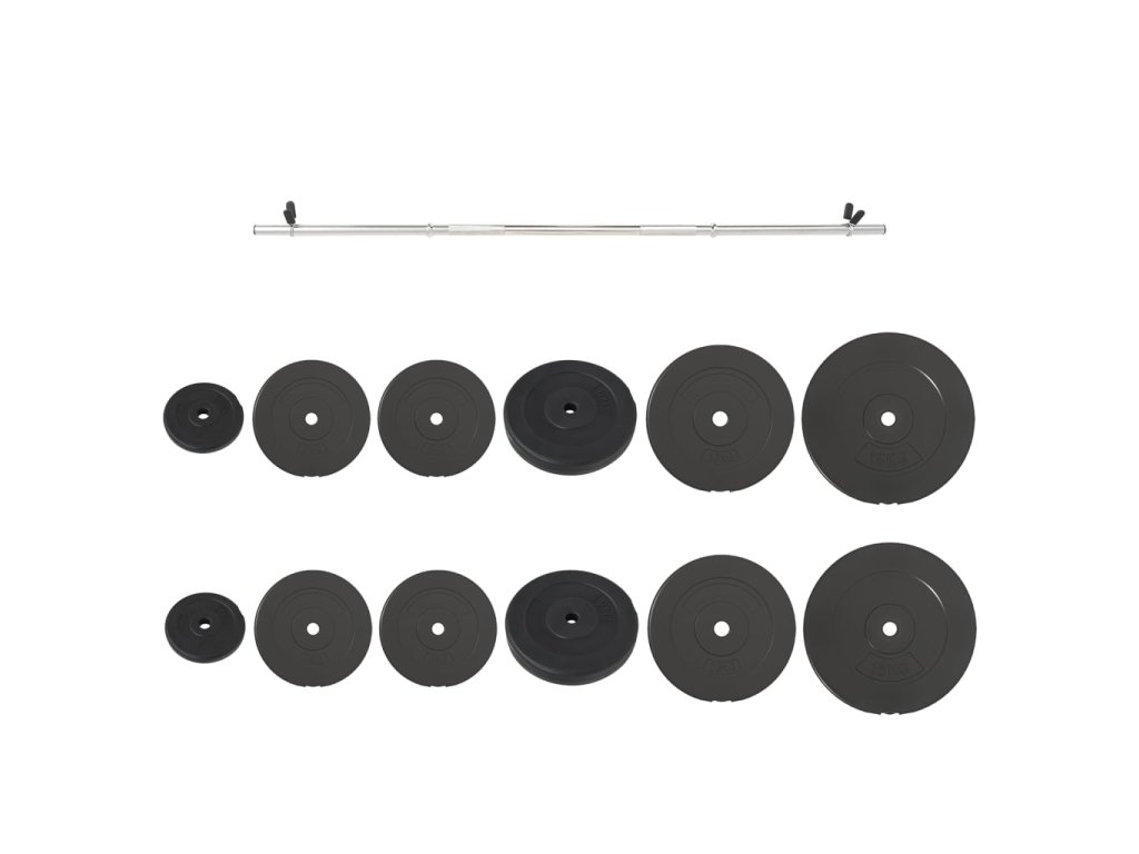 - Hmotnost kotoučů: 4x 5 kg, 2x 7,5 kg, 2x 1,25 kg, 2x 15 kg, 2x 10 kg